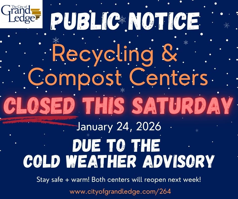 Due to the Cold Weather Advisory issued by the National Weather Service (NWS), the Recycling and Compost Centers will be CLOSED on Saturday, January 24, 2026.