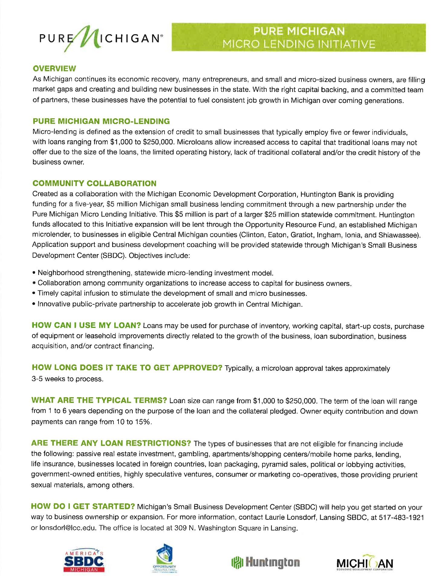 Pure Michigan Micro Lending Initiative (JPG)